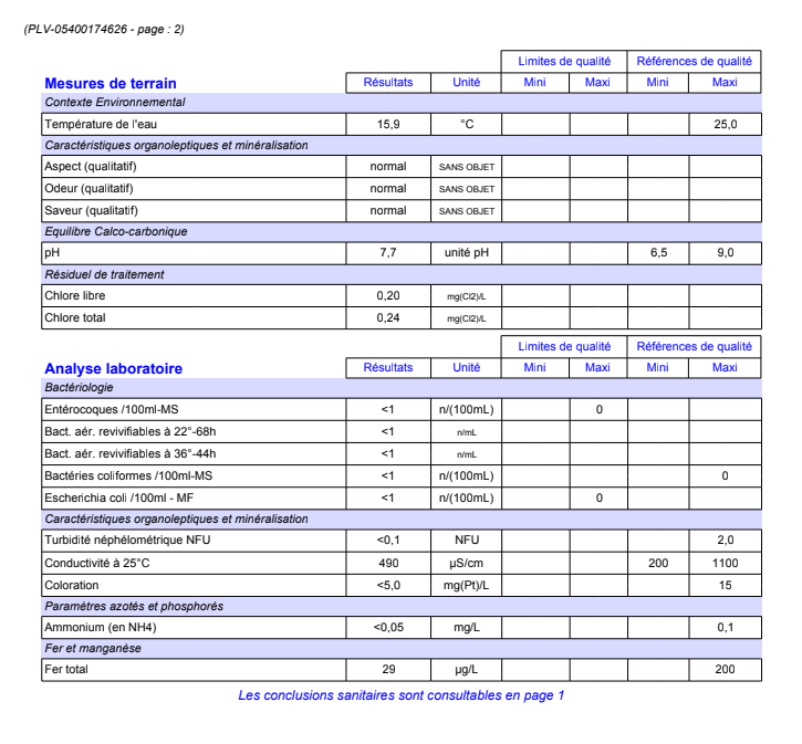 Contrôle sanitaire des eaux destinées à la consommation humaine