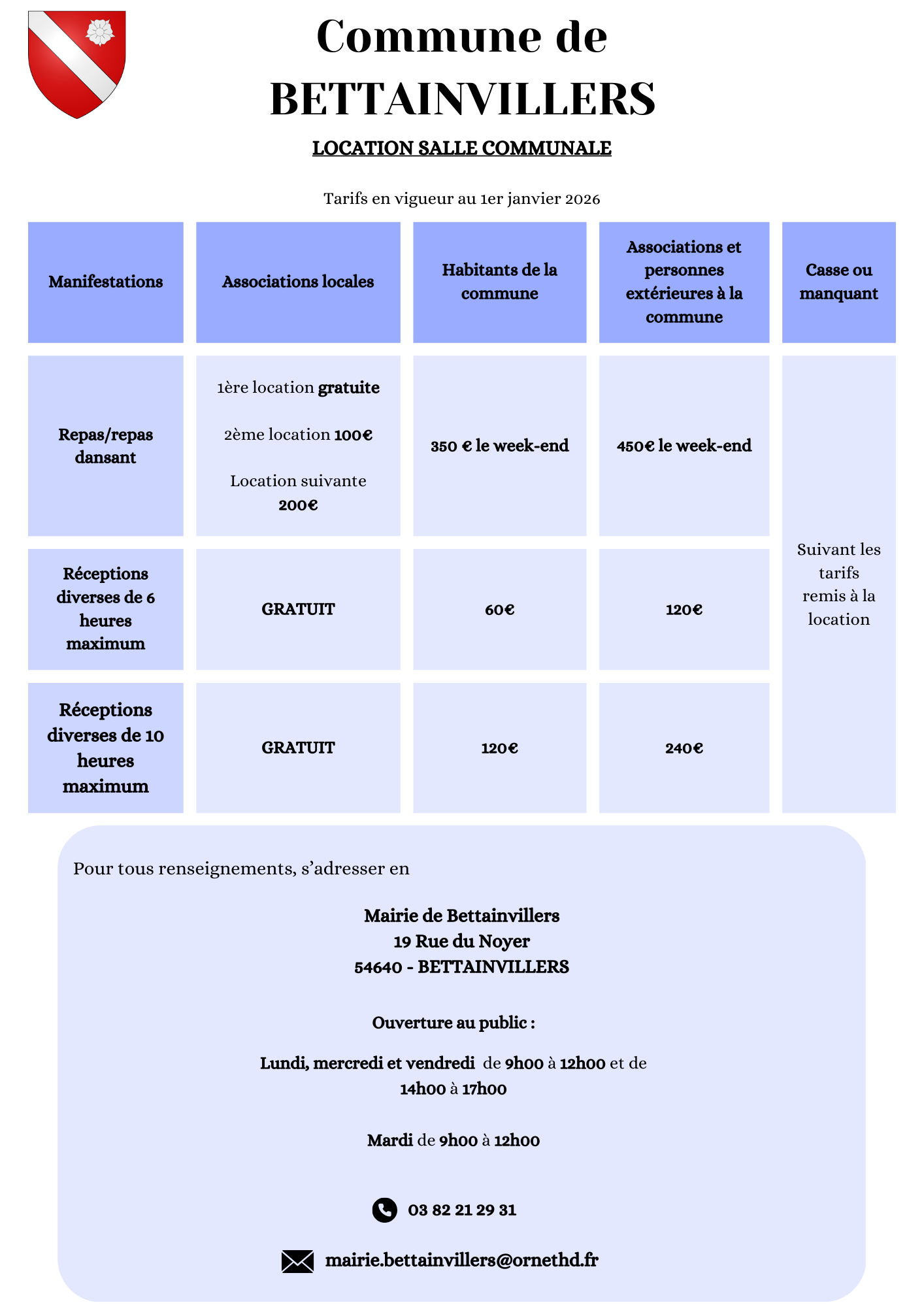 LOCATION DE LA SALLE COMMUNALE
